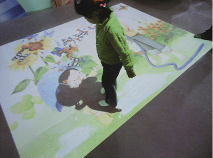 地面投影技术主要应用了计算机的视频捕捉以及计算机图形图像处理技术,由图像采集设备捕获人的位置信息并传递给计算机,计算机对这些信息进行处理,并驱动影像进行相应的变幻。