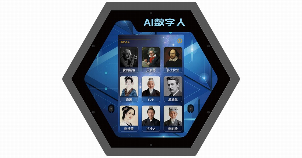 它是校园展示墙上的 “名人互动会客厅”,专门帮同学们跨越时空对话先贤。主界面清晰陈列着九位各领域名人的形象头像,涵盖科学、文学、历史等多个领域,像一扇连接过去与当下的对话窗口。