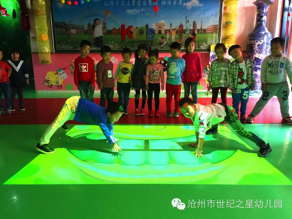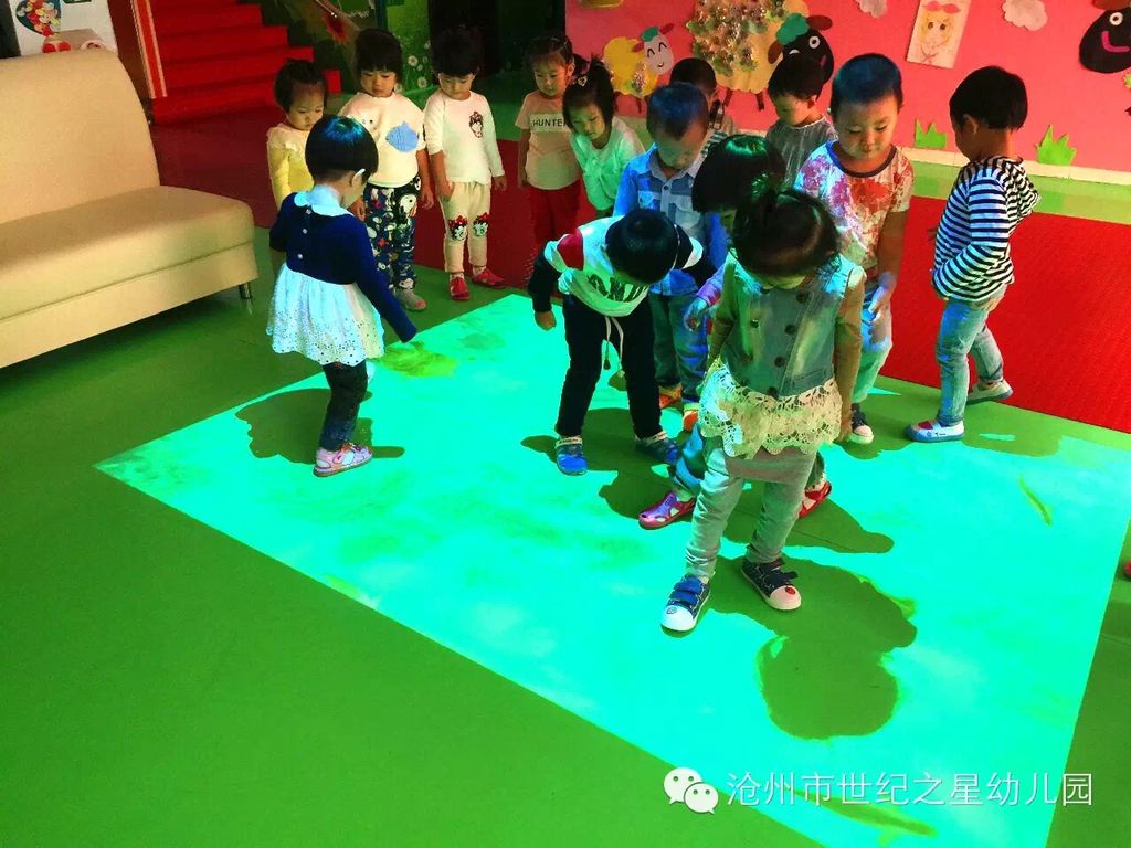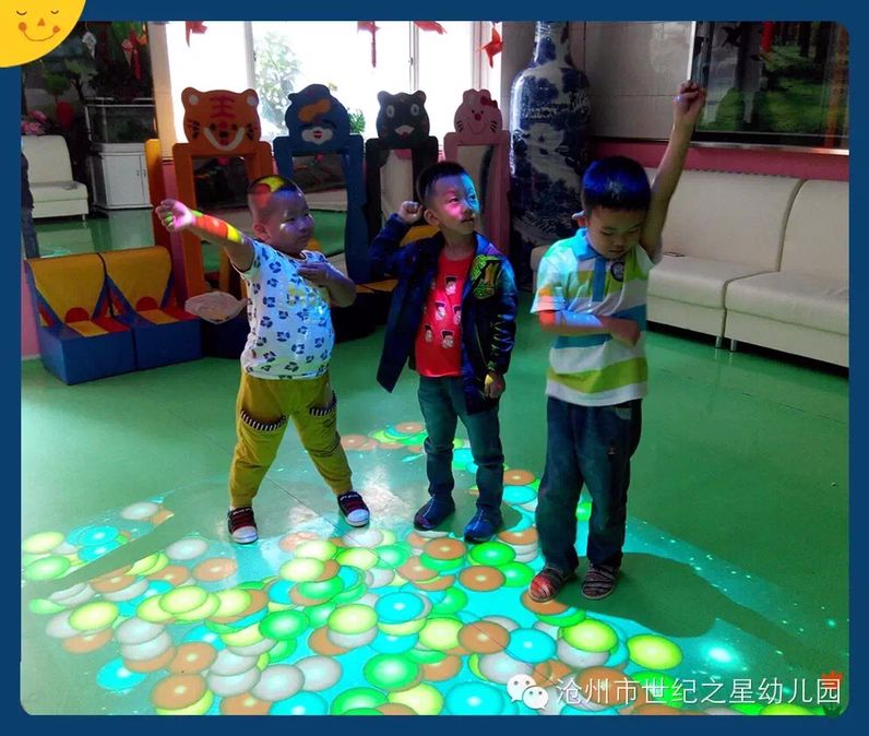 走进我们的大厅,屋顶上有可爱的动物对我们微笑,墙面上有多彩的玩具向我们招手,就连地面,也跟我们一起做游戏了!