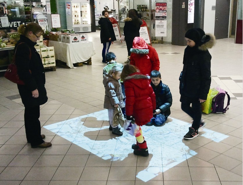 “魔幻地面”(MAGIC FLOOR)是为开发孩子潜能而开发的产品,它以医学为基础,人机交互为表现形式,设计符合孩子发育规律的互动游戏。孩子通过肢体动作和投影画面产生愉快的互动,从而刺激感官,运动肢体。