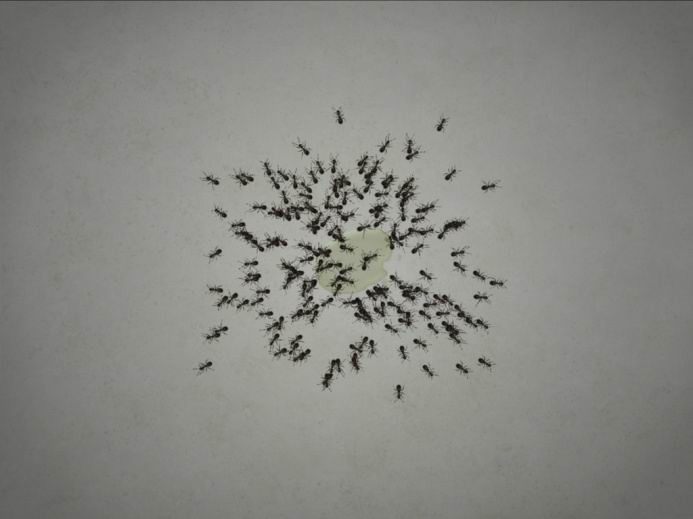 用脚驱赶爬向糖浆的蚂蚁…