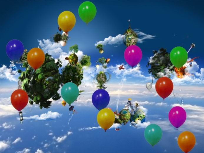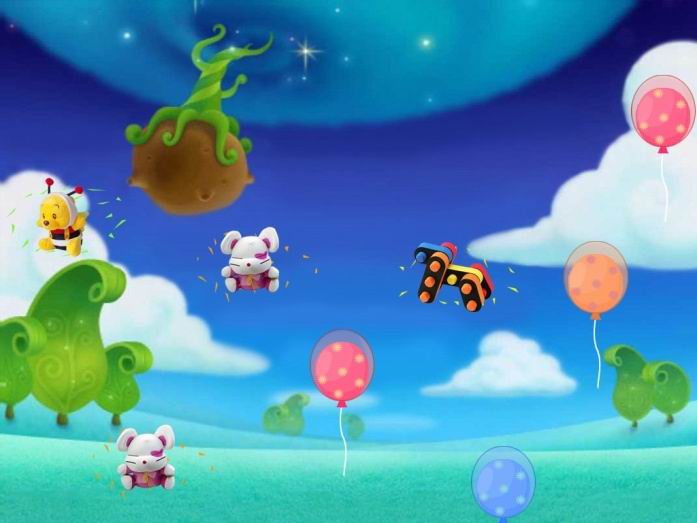 用脚触碰气球,气球会飘…